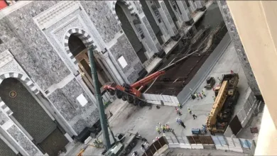 بالصور : سقوط رافعة في الحرم سبب السقوط