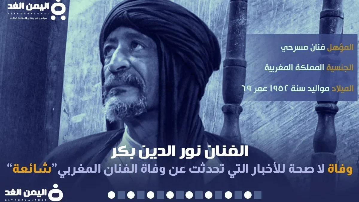 ماهي صحة الأخبار التي تم الحديث عنها عبر مواقع التواصل الإجتماعي تويتر وكذلك فيس بوك حول خبر وفاة الفنان نور الدين بكر وذلك بعد تأزم حالته الصحة بسبب المرض الذي أرهقه لفتره طويله, ونحن هنا في اليمن الغد سوف نضع لكم صحة تلك الأخبار وتفاصيل أخرى حول بداية مشواره الفني.