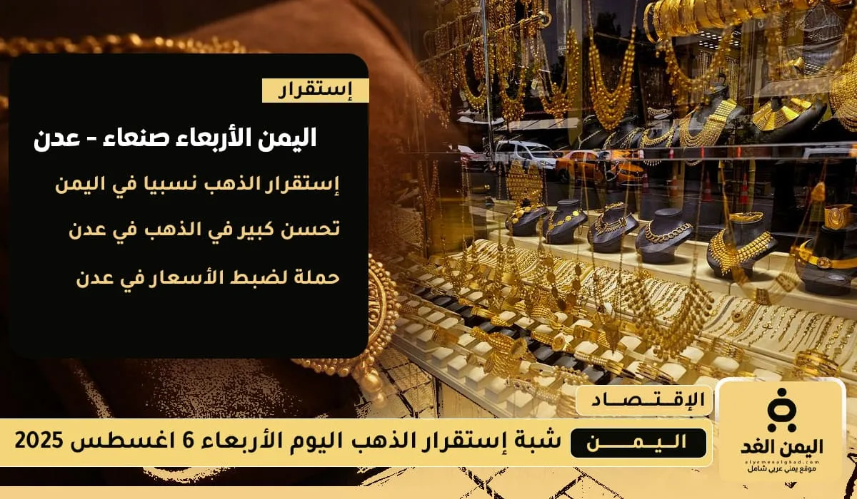 عدن إستقرار سعر الذهب اليوم 6 أغسطس 2025 وإرتفاع طفيف في صنعاء