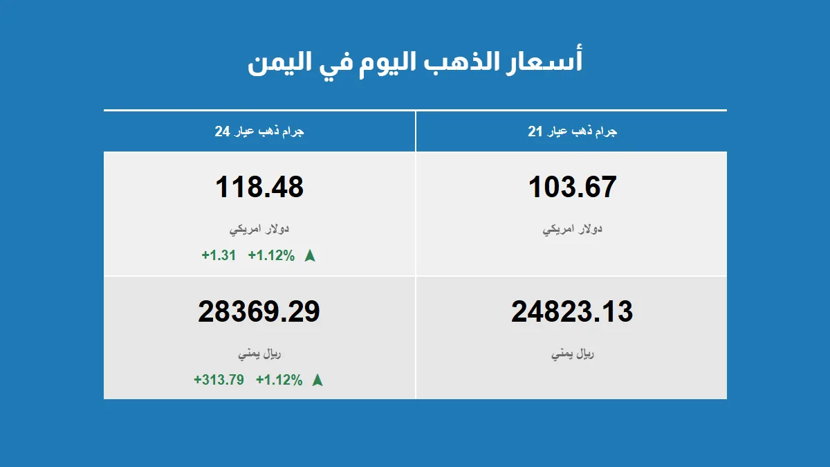 تأثرت الأسعار صباح اليوم السبت في سوق بيع وشراء الذهب في التعاملات اليوم للأسعار، وسجل سعر متوسط الذهب عيار 24 سعر 28372 ريال يمني كما مبين في الفجدول.