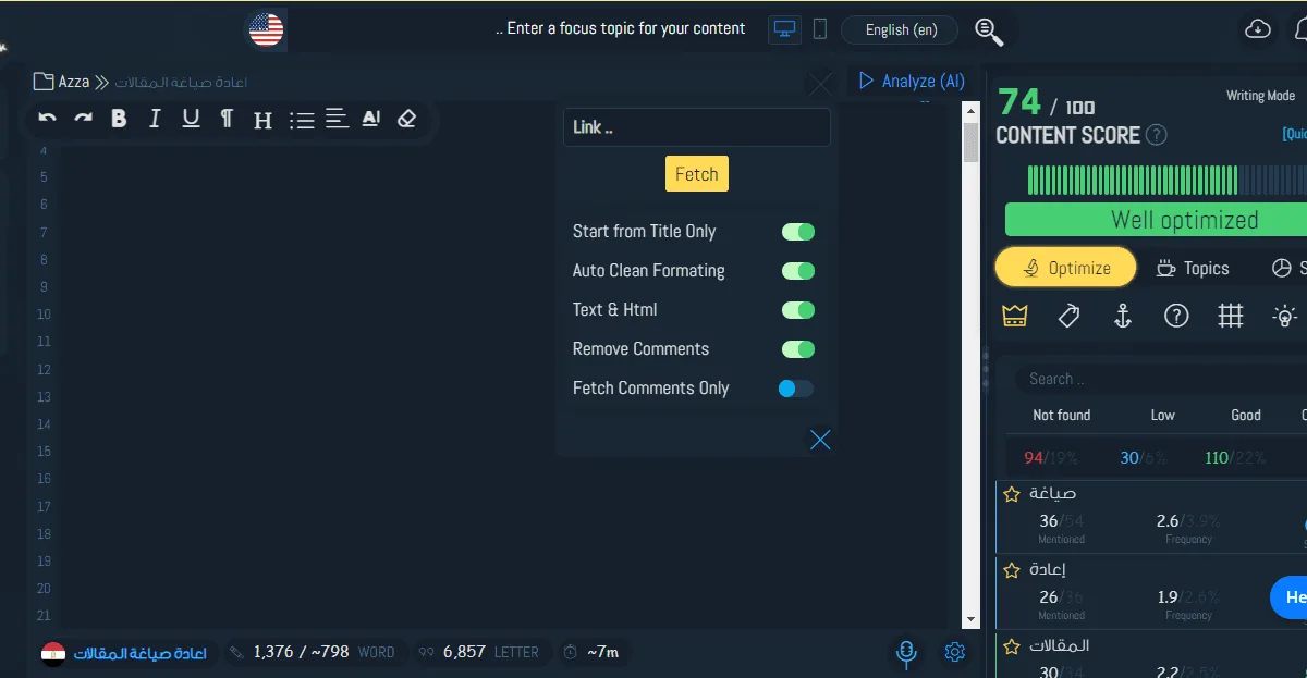- يمكنك عمل إعادة صياغه للمقال بالاستعانة بالكلمات والجمل المتاحة المقترحة من جين رانك، وقم بعمل التحديث المناسب لمحركات البحث SEO .