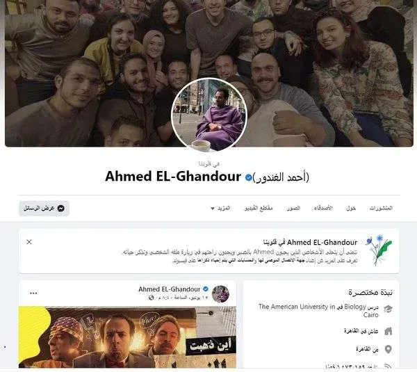 تفاجاء الكثيرون من مرتادي صفحة الإعلامي والكوميدي أحمد الغندور والمشهور بإسم الدحيح بعرض أشارة إلى وفاة صاحب الحساب ويتم وضع تلك الرسالة بشكل إفتراضي للحسابات التي توفى صاحبها.