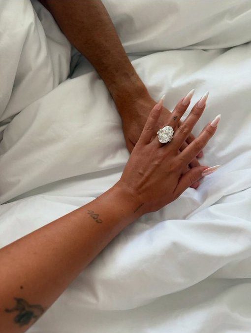 • وفقًا لمجلة People، يضم الخاتم حجماً لا يقل عن 35 قيراطاً من الألماس، مع تزينه بحجر رئيسي كبير وسط حجرين جانبيين، وتُقدّر قيمته ما بين 2 إلى 5 ملايين دولار .