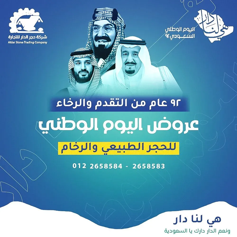 عروض اليوم الوطني 94 السعودي للحجر الطبيعي حيث تقدم العديد من الشركات والمؤسسات والمتاجر الإلكترونية والصيدليات عروضاً خاصة بمناسبة اليوم الوطني السعودي 1446 الثاني والتسعون لتوحيد المملكة العربية السعودية.
