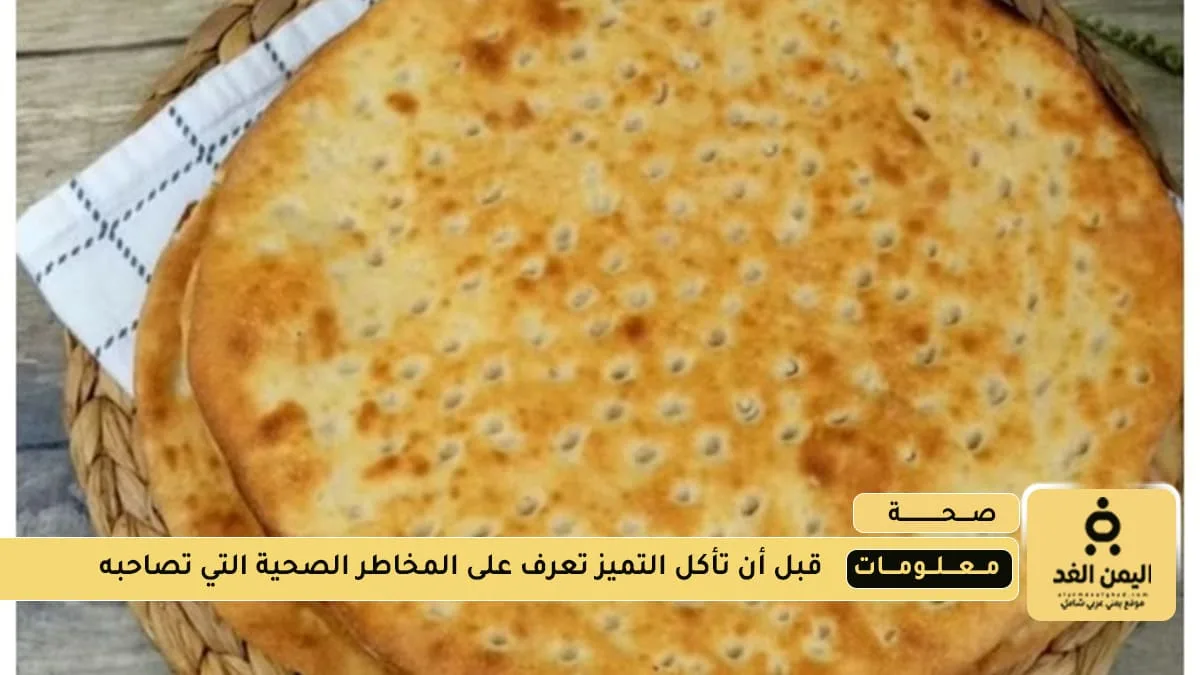 رغم طعمه الشهي وسهولة تحضيره أو شرائه، إلا أن التميس – بحسب مختصين – لا يخلو من مخاطر عند الإفراط في استهلاكه، خصوصًا إذا كان الخبز مصنعًا بالدقيق الأبيض الخالي من الألياف.
