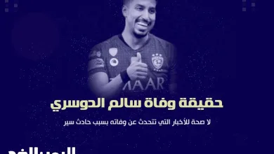الإثنين 30 سبتمبر 2024 - 7:36 محقيقة وفاة سالم الدوسري اللاعب السعودي في نادي الهلال