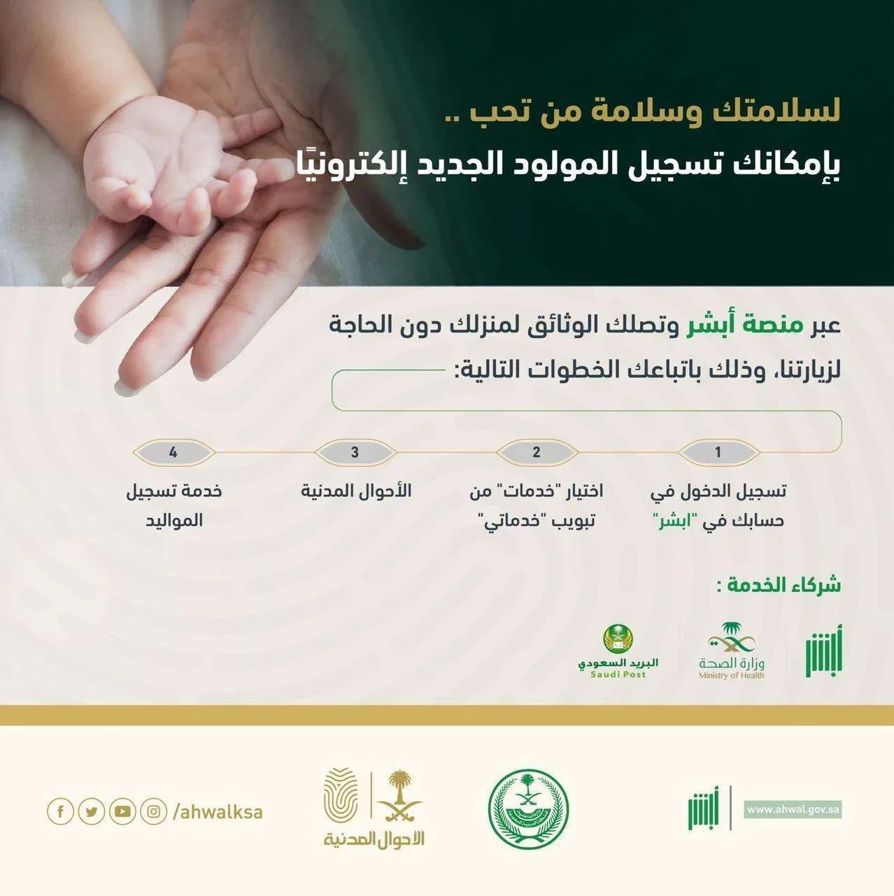 الاحوال المدنيه: من أجل سلامتك أنت وأحبائك ، يمكنك تسجيل طفل جديد عبر الإنترنت