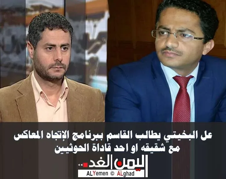 الإتجاه المعاكس بين الشقيقين : هكذا طالب الناشط السياسي واحد قيادات الحوثيين سابقاً علي البخيتي من الإعلامي فيصل القاسم بإتاحة الفرصة له مع شقيقه محمد البخيتي بالمواجهة والمناظرة في برنامج الإتجاه المعاكس .