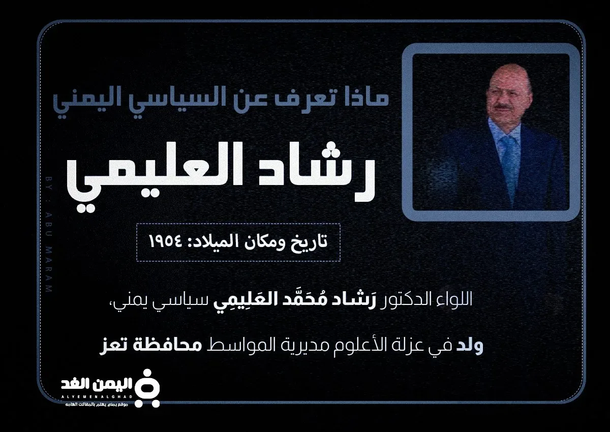 من هو رشاد العليمي Rashad Al Alimi الذي برز إسمه بشكل كبير بعد إعلان الرئيس هادي عن تشكيل مجلس رئاسي بقيادته في السنة 2022 في العاصمة السعودية الرياض فمن هو الدكتور رشاد العليمي رئيس المجلس وبعض التفاصيل حوله من خلال موقع اليمن الغد تابعونا.