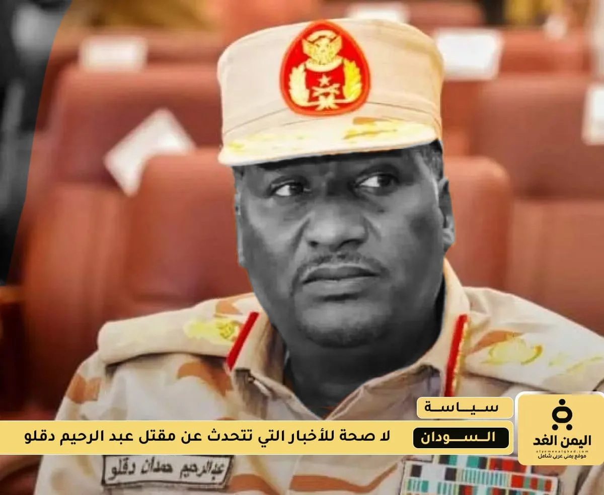 من جهة أخرى نفت مصادر مطلعة لـ اليمن الغد الأخبار التي يتم تداولها حول مقتل عبد الرحيم دقلو، وأشارت تلك المصادر أنه تم نشر بعض الأخبار والمنشورات عبر منصات التواصل تُفيد بـ وفاة عبد الرحيم دقلو .