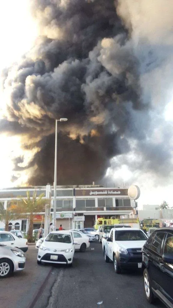 حريق كبير اندلع اليوم في إحدى المراكز في جده في إحدى الأحياء التي تحتوى على العديد من المحلات والمراكز التجاريه والأفران وغيرها من المحلات التجاريه .