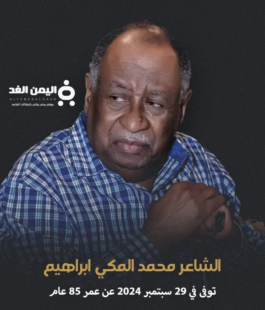 توفى شاعر السودان الكبير وشاعر اكتوبر محمد المكي إبراهيم اليوم الأحد 29 سبتمبر 2024 بأحد مستشفيات الشيخ زايد، عن عمر يناهز 85 عاما بعد معاناته مع المرض, وسيتم تشييع جنازته الإثنين 30 سبتمبر 2024.