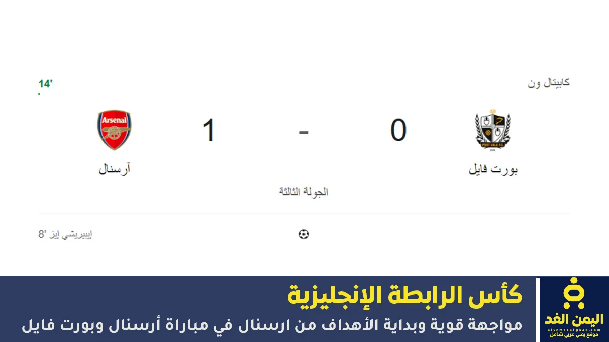 إنتهت مباراة أرسنال ضد بورت بنتيجة 2:0 لصالح أرسنال