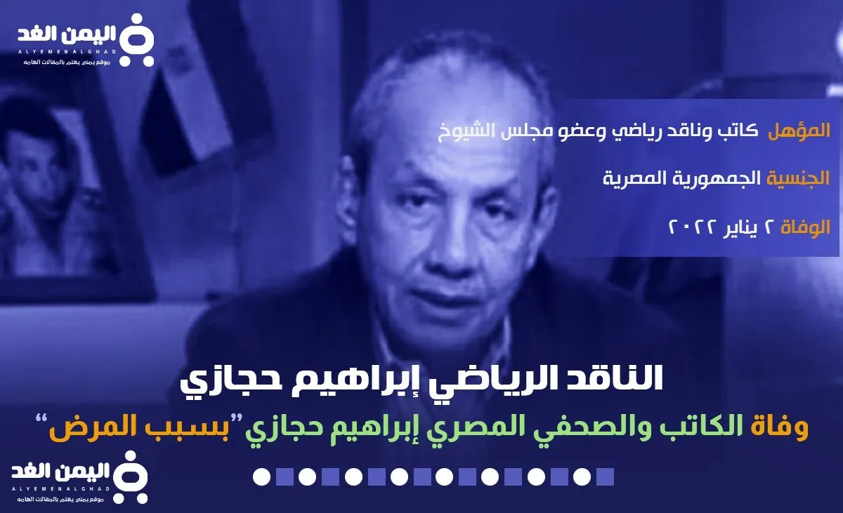 رحل الكاتب والناقد الرياضي المصري الكبير إبراهيم حجازي بعد ان صارع المرض لمدة طويلة, وتم الإعلان خلال الساعات الماضية من خلال المواقع الرياضية والإخبارية المصرية صباح اليوم. https://ye.alyemenalghad.com