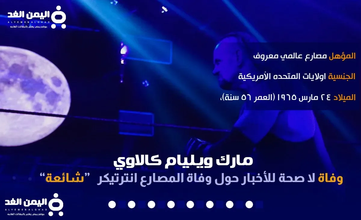 ماهي صحة الأخبار حول وفاة المصارع الأمريكي المشهور عالمياً في حلبات المصارعة حيث تم الحديث من قبل الكثيرون حول خبر وفاة اندرتيكر فما هي صحة تلك الأخبار والذي سنضع لكم صحة ذلك الخبر من خلال موقع اليمن الغد ومن هو الذي توفى.