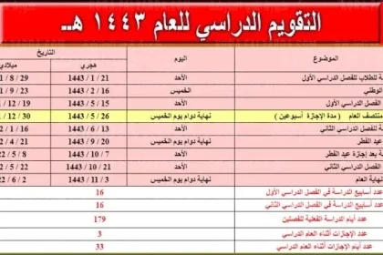 جدول اجازه المدارس ١٤٤٣ في المملكة العربية السعودية هو الدليل الذي يستطيع…