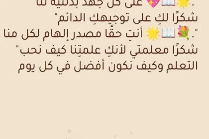 رسالة شكر للمعلمة 2025 أرقى عبارات الامتنان والتقدير