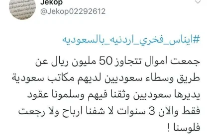 عملية نصب عدت 50 مليون ريال رفع هاشتاق إيناس فخري أردنية بالسعودية…