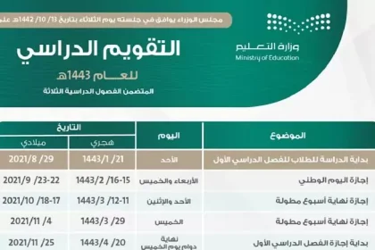 موعد نهاية الفصل الدراسي الثاني 1443 في المملكة العربية السعودية يرغب في…
